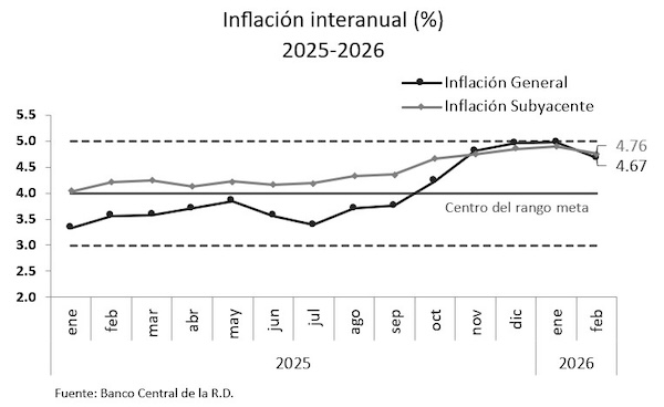 The Central Bank of the Dominican Republic (BCRD) reported Wednesday, 11 March 2026 that the Consumer Price Index (CPI) rose by a marginal 0.03% in February 2026. This stability marks 34 consecutive months that year-over-year inflation has remained within the government’s target range.