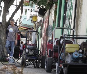 Negligence of city governments has allowed businesses and individuals to cut into sidewalk space in the cities. A report in El Dia describes sidewalks in Santo Domingo as “an obstacle course” that pedestrians have to deal with every day. The newspaper explains that the situation is so common that city residents see it as normal. Improvised food vendors, garbage tanks, ramps to facilitate the entry of vehicles into buildings, repair shops, potable water bottle stands, emergency power plants all take up city sidewalk space.