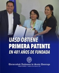 On Thursday, 16 January 2020, the state university, for the first time in its 481-year history, registered a patent. Scientists from the Santo Domingo Autonomous University (UASD) patented a molecule with potential use to fight cancer. The National Office of Intellectual Property (Onapi) patented the discovery of the molecule Koanolide A for the fighting of cancer. UASD chemistry professor Quirico Castillo Perdomo received the certificate for her discovery. The certificate gives the authorities of the UASD the exclusive right to exploit the discovery.