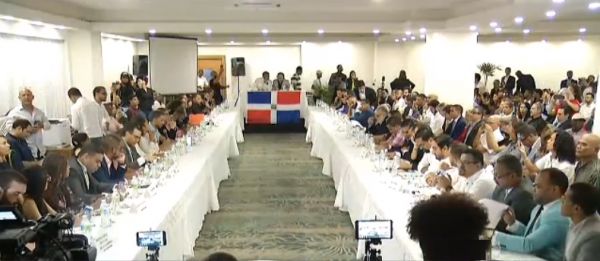 The space at the PUCMM has given a table for the representatives of the two leading political parties, the PLD and the PRM, to discuss pending issues. Nothing concrete has come yet from the dialogues. The talks are being streamed live.