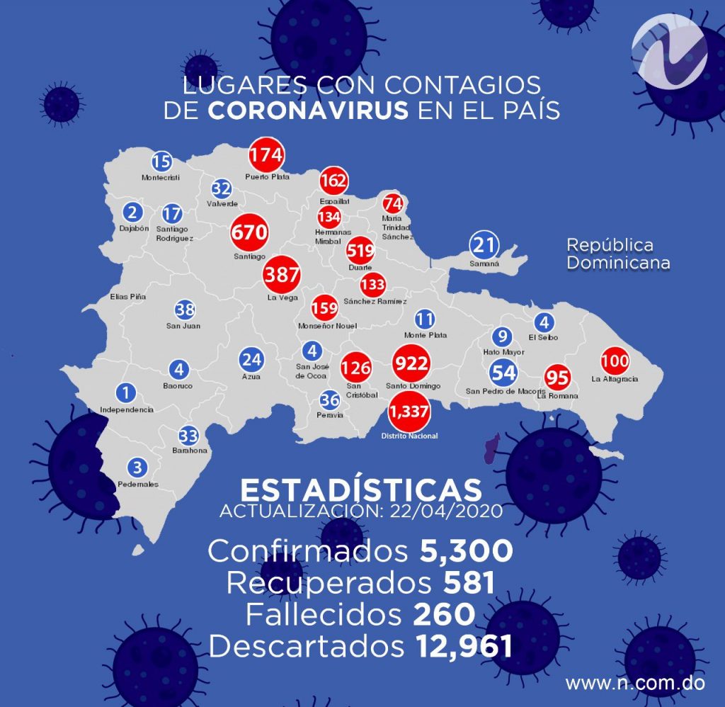 According to Coronavirus Bulletin #34 of the Public Health Ministry’s Department of Epidemiology, the Dominican Republic has 5,360 confirmed cases, 256 new cases and 260 deaths. There are 955 patients hospitalized, including 135 in intensive care units.