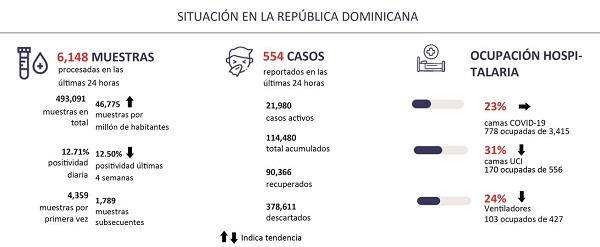 The Ministry of Public Health report indicates that 23% of Covid-19 hospital beds are occupied (778 of 3,415 total available). 31% of the intensive care units for Covid-19 are occupied (170 of 556 beds). Health Minister Plutarco Arias says that the emphasis is on detecting the cases early on, so fewer persons now are requiring hospitalization.