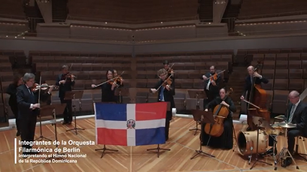 The Embassy of Germany celebrated the 30 years of Germany’s unification by sharing with the Dominican people a symbolic tribute by the Berlin Philarmonic Orchestra to the milestone 3 October date. In a five-minute video, the Philarmonic Orchestra of Berlin plays the Dominican and German anthems and the German ambassador and Dominican foreign minister speak.