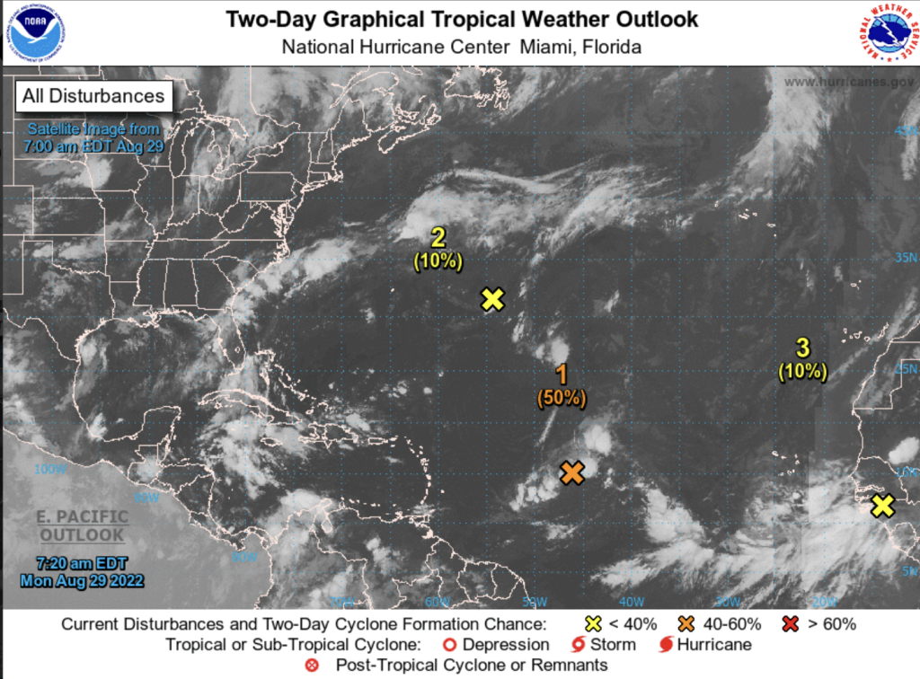 “We are monitoring an area of showers and thunderstorms associated with a trough located in the tropical central Atlantic, with a 50% probability of reaching tropical cyclone status during the next 48 hours. In addition, we are following the evolution of another area of low pressure located hundreds of kilometers east of Bermuda, with a 10% in 48 hours to become a possible tropical cyclone. In addition, another new area of downpours associated with a tropical wave coming out of Africa is observed.”