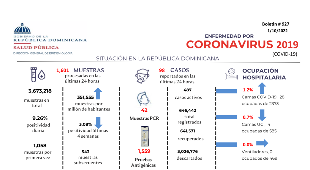 The number of Covid-19 registered cases in the Dominican Republic for Bulletin #927 was 98 down from 133 on the previous day. The seven-day average (confirmed lab-reported cases) is at 138. The number of active cases is now at 487 and 489 for the seven-day average.