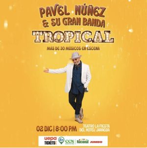 Singer-composer Pavel Núñez is booked for the Teatro La Fiesta of the Jaragua Renaissance Hotel on 2 December 2022. He is performing with a band of 30 musicians. Tickets are for sale at Uepa Tickets and at CCN, El Nacional and Jumbo ticket offices. Tickets start at RD$2,000.