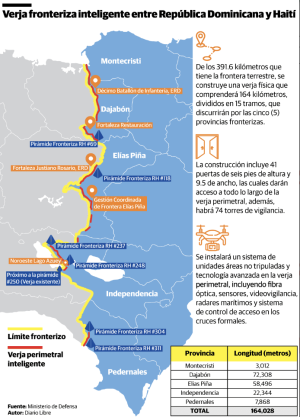 The Dominican border with Haiti is approximately 396.1 km long, from south to north. The Ministry of Defense took Diario Libre reporters on tour to share information on the border security project under construction. The project encompasses the construction of 164 km of double-lane road with a width of 12 meters to optimize the patrolling of the area with Haiti.