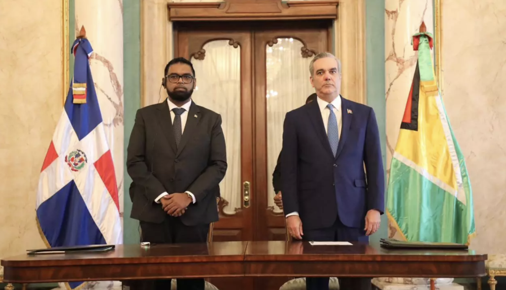 President Luis Abinader and visiting President Mohamed Irfaan Ali of Guyana signed six agreements at the Presidential Palace. The agreements seek to benefit energy and food security in the countries and the region. Both leaders expressed their commitment to pursuing greater collaboration, particularly in the areas of energy, agriculture, tourism, trade, ICT, infrastructure, and industry.