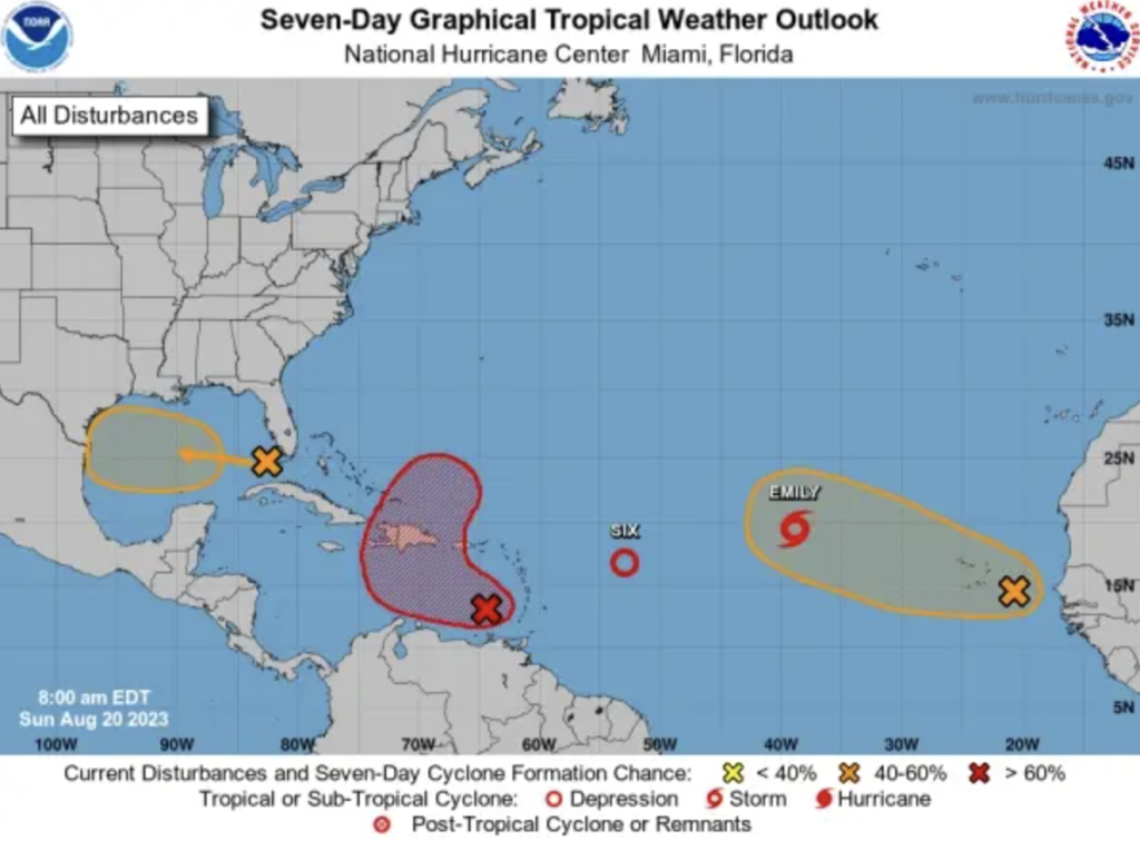 Weather forecasters say that one of these storms, now named Tropical Storm Franklin, could reach the Dominican Republic as a Tropical Storm by Tuesday, 21 August 2023.