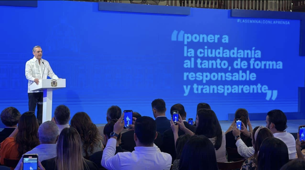 President Luis Abinader, who recently announced he will seek reelection in the 19 May 2024 election, is convening leading journalists to a conversation at the Presidential Palace every week. It is a time for the President to announce what his government is working on and address concerns.