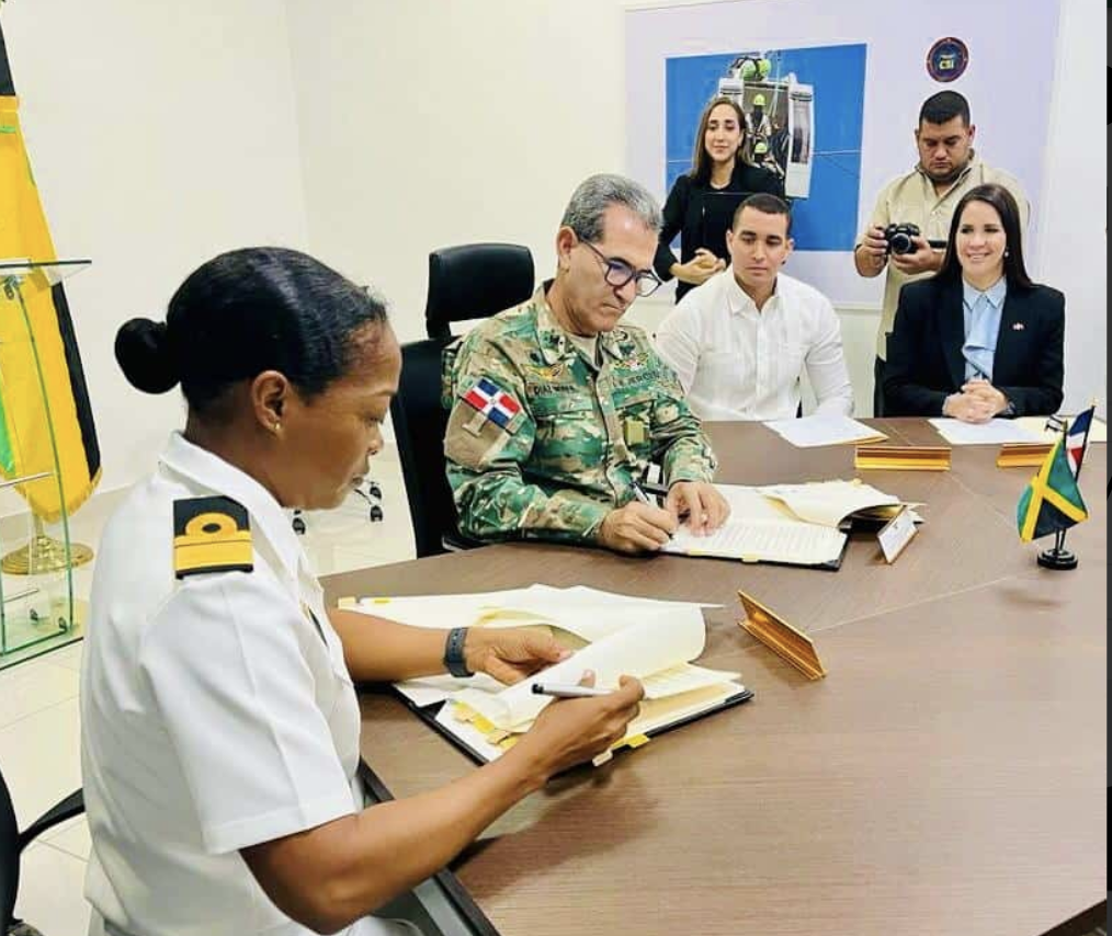 Defense Minister Lieutenant General Carlos Luciano Díaz Morfa and the Chief of Staff of the Jamaica Defense Force, Rear Admiral Antonette Wemyss Gorman, signed the security and defense agreements. This is the first visit of the highest-ranking chief of the Jamaican defense force.