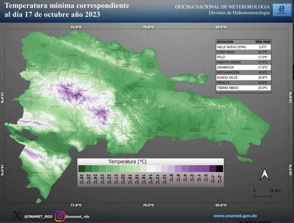 The DR is under the indirect effects of the passing of Hurricane Tammy, well to the northeast. This means an increase in rain, especially in the central mountainous areas of the country.