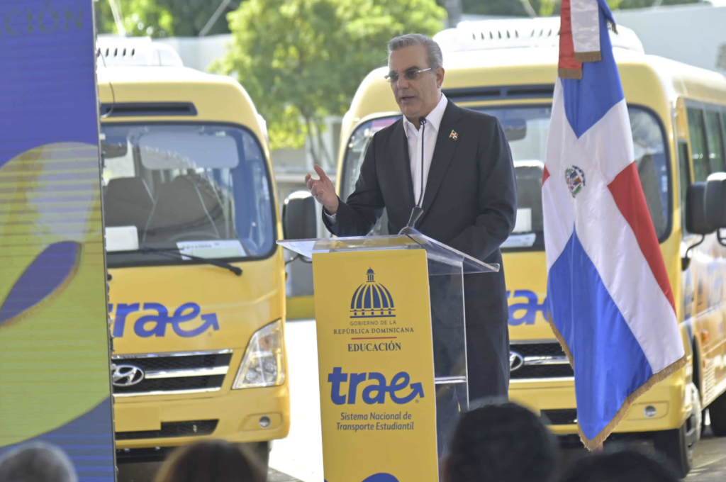 President Luis Abinader was present for the official start of the Student Transportation Program (TRAE) on Monday, 23 October 2023. The program seeks to guarantee the safety of children while relieving the family budget from transportation costs and reducing student dropout rates.