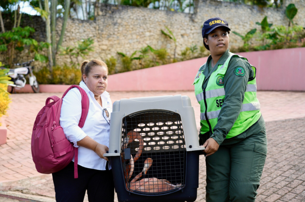 Technicians Luis Aníbal José Amparo and Indira Sanchez, inspectors from the Department of Wildlife Regulation and Control of the Biodiversity Department, rescued the birds.