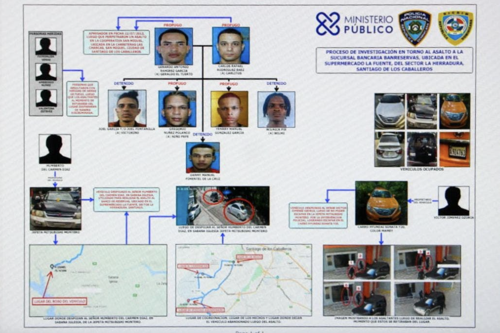 But crime, especially one so spectacular, is not easily carried out in this country. The National Police in less than a week announced the capture and arrest of five of the seven men crew that robbed the bank. Some RD$1.5 million in cash has also said to have been recovered.