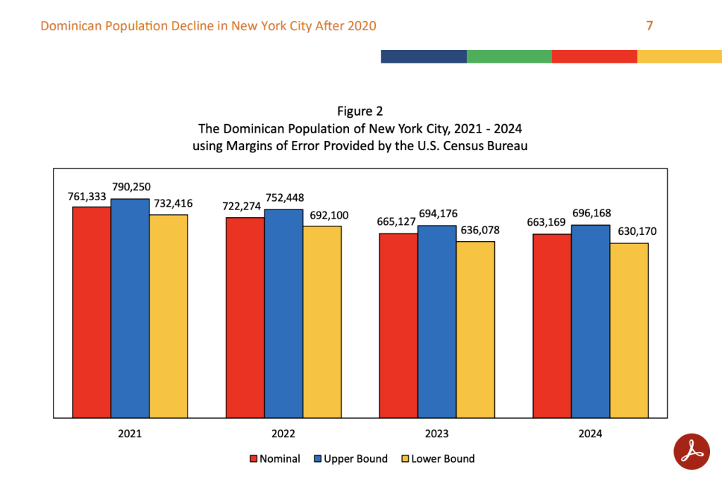 An October 2025 CUNY Latino Data Project Report indicates the Dominican population in New York City has declined by nearly 13% since 2021 as Dominicans migrate to other states.
